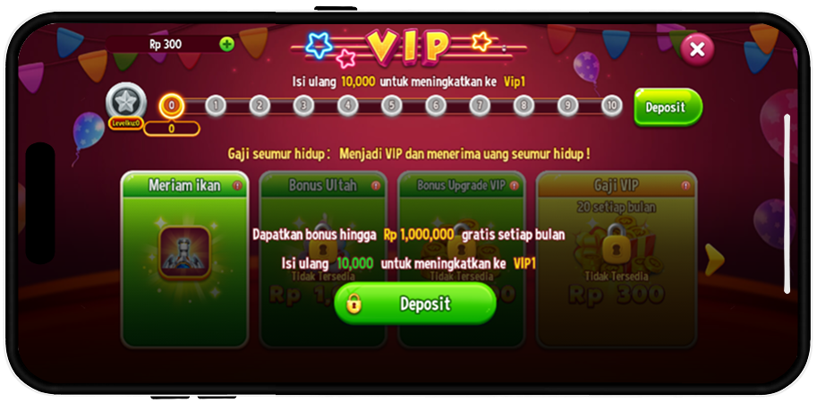 💥Note: If you finish the first VIP upgrade ( from VIP1 TO VIP2 ),then you can also get Rp10,000 extra reward !